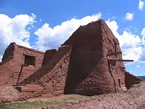 Beyond the park, you can hurry to Santa Fe along I-25, but there are a few things to see on the side roads that may interest you. The town of Pecos is just west of the park, and while the town is of no great interest, a few nearby structures date to Trail days and are preserved. Look in particular for an old adobe building at roadside (literally—it's about 5 feet from the highway, protected by a bumper) about three miles west of the center of town on NM 50. This is the sole surviving structure from Pigeon's Ranch, one of the key sites in the Battle of Glorieta Pass. Look but don't touch (it's on private property and is seriously dilapidated), and hope that sporadic efforts to preserve this and surrounding battlefield sites come to something.