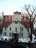 - 🌍 Clock Tower (時計台 Tokeidai) (Close to Ōdōri Station.). This rather diminutive building has become a symbol of Sapporo, mostly by being the oldest building still standing. It was constructed in 1878 for the Sapporo Agricultural College (now the Hokkaido University) and would not look out of place in "Smalltown U.S.A." The inside has a small retrospective of its history. Visitor beware, as this is for some reason a mecca for Japanese tourists coming to Sapporo who feel that no trip to Sapporo would be complete without a photo in front of the Tokeidai, but has been rated as Japan's third "most disappointing" tourist attraction! ¥200.