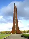 - 🌍 100th anniversary Memorial Park (百年記念塔, hyakunen kinentō) (just down the road from Pioneer Village). This is the site of a giant (and somewhat imposing) tower which can be climbed, providing a good vantage point of Sapporo (though quite some distance from the city center) and surrounding mountains. This site is popular with school groups. As of May 2018, the tower is closed "to prevent danger" and access path is blocked. Free.