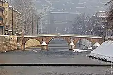 - 🌍 Pansion Sebilj, Bravadžiluk bb (Obala Kulina baba between Careve cuprija and Novi most at the Miljacka riverside), ☏ +387 33 573-500. Most of the staff speak English fluently. An internet-cafe is downstairs in the same house, a restaurant in the atrium. The restaurants in the Old Town, groceries and a pharmacy are all in walking distance. Good location, friendly staff, hot water, clean. But no internet, walls are paper thin, you can hear everything in the next room, and the downstairs bar plays loud music till midnight, uncomfortable slat beds. Unisex showers (only 2) and bathroom. No way to lock bathroom or shower area when inside. No laundry service, no kitchen. No lockers for gear. €15 ppn.