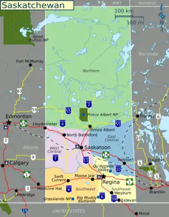| West Central Saskatchewan The western half of the middle of the province, anchored by province's largest city of Saskatoon. |
