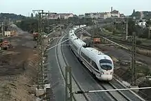 From the neighbouring states you may also enter Saxony with regional express (RE) trains (i.e. local trains that do not stop at every station), namely from Hof, Bamberg and even Nuremberg in Franconia (the RE takes twice as long as the ICE, but may be worth considering for travellers on a shoe string and groups, thanks to special offer tickets); Cottbus in Brandenburg; Dessau, Naumburg or Wittenberg in Saxony-Anhalt; Gera, Jena or Weimar in Thuringia. There are also some cross-border connections with local trains from neighbouring regions in the Czech Republic (North Bohemia), including Cheb, Děčín and Liberec. There are also local trains from Karlovy Vary in the West Bohemian Spa Triangle to Johanngeorgenstadt.