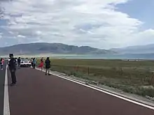 The lake is by the G30 expressway and the old G312 national highway that connects Urumqi with Khorgos border crossing with Kazakhstan.