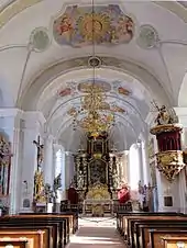- 🌍 Parish church of St. Sixtus (Pfarrkirche St- Sixtus), Lautererstraße 1. The church was built 1712-15, incorporating parts of older churches on the same place. It has a very impressive ceiling fresco.