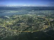 CERN Aerial View of LHC accelerator and it's experiments (Lake Geneva in the background)