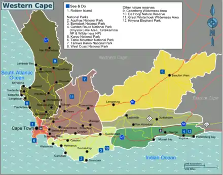 The Western Cape province is the most south western province in South Africa. It includes a large proportion of South Africa's tourist destinations and attractions, amongst which are several of the better known diving destinations.
