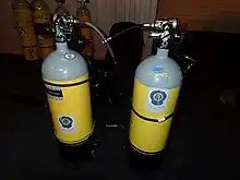 - Medical oxygen specifically intended for surface first aid purposes should be carried in the official black cylinder with white shoulder. Most have a pin index valve, but this is not a legal requirement, and a bullnose fitting as is used on bulk cylinders, or a scuba pillar valve may also be used, depending on the regulator available. As it is not a legal requirement to carry medical oxygen on a dive boat, it is also not a requirement to use any specific type of regulator. The regulators marketed by DAN are popular, and possibly the best for purpose, as they allow 100% on demand for conscious users and can also supply free-flow to a medical mask for unconscious users. Other types may be diving regulators which will only supply a demand regulator, and some older free-flow systems intended for general first aid purposes.