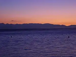 - π Golden Gardens Park. A wonderful saltwater beach park in Ballard, past the locks and Shilshole Marina. Water around here is too cold to swim except for crazy and determined kids during the hottest months, but you can wade a little, walk the beach, make sand castles, claim a fire pit, and watch wind surfers and ships go by. On clear days there is a magnificent view of the Olympics on the other side of Puget Sound. Kids of all ages have endless muddy fun trying to dam up or re-route the fresh water stream flowing across one end of the beach.