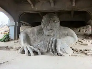 - π Fremont Troll (on 36th Street under the Aurora Bridge). Strikingly large (photos generally don't do it justice), the Troll is a concrete statue under the Aurora Bridge clutching a full size Volkswagen Bug in its grip. The statue is notable enough to even gets its own street name - just off of N. 36th Street on Troll Avenue.