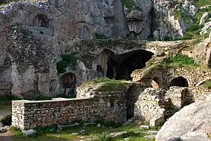 - 🌍 Cave of the Seven Sleepers, Acarlar. Closed. This is east side of Ephesus but not within the ticketed area. It's a series of catacombs, part of the Roman city necropolis - only the highest nobles were buried within city limits. The area is free to access but a gate bars entry to the tombs. They were excavated in 1927 and findings are now in the Selçuk Ephesus museum. There's little to see here, the main attraction is the legend of the "Seven Sleepers", true believers who hid or were immured here circa 250 AD in a time of religious persecution. They re-emerged 300 years later, blinking in the sunlight to find Christianity blossomed into the official Roman religion, occasion for hallelujahs and high-fives. But these guys slept around - Ephesus is just one of seven sites with the same legend, from China to Tunisia. Best documented is the cave in al-Rajib district of Amman, Jordan, where according to the Surah al-Kahf (18th book of the Qur'an) the seven were accompanied by a dog, the one thing you will see here.