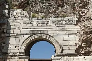 - The aqueduct ruins are Byzantine and stand 15 m tall, coursing west from the railway station towards Ayasuluk hill. They're crowned with storks' nests and floodlit at night.