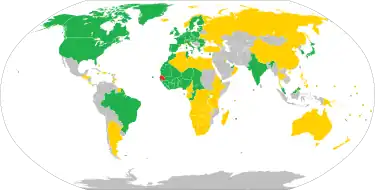 The currency of the country is the West African CFA franc, denoted CFA (ISO currency code: XOF). It's also used by seven other West African countries. It is interchangeable at par with the Central African CFA franc (XAF), which is used by six countries. Both currencies are fixed at a rate of 1 euro = 655.957 CFA francs.