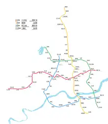 The Shenyang Metro has three lines. Line 1 runs east-west across the city (serving Shenyang rail station). Line 2 runs north-south (serving Shenyang North rail station). Lines 9 runs in an L shape, from northwest to southwest to southeast.Lines 10 runs in an L shape, from northwest to southwest to southeast.