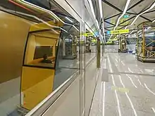 Between the southern and northern clusters: while earlier irrelevant, the opening of Terminal B has changed things. The airport built the Interterminal underground passage connecting B (designated as the Sheremetyevo-1 stop) with D, E and F as well as the AeroExpress station (Sheremetyevo-2). This free service uses APM four-car trains to shuttle passengers between the clusters in 4 minutes, with the first two cars for lanside transit (passengers who hav not been through security) while the last two are for airside transit (passengers that have cleared security). There is also a luggage passage between the clusters as well. This is the first time such tunnels have been built under active runways.