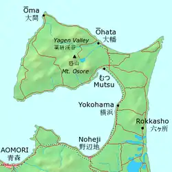 The Shimokita Peninsula (下北半島 Shimokita-hantō) is the remote northeastern cape of the Japanese island of Honshu, stretching out towards Hokkaido.
