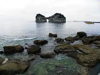 - Engetsu Island. A small island in Shirahama bay (20 minutes walk from the mean beach to get in front of it). A rock formation with a hole in the middle allows in some days to see the Sun set through it. An enjoyable view and stroll in any (not too hot or humid) day.