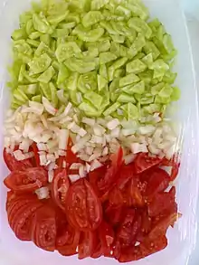 - Shirazi salad - A delicious and famous salad available throughout Iran, made with cucumbers, tomatoes, onions and a simple lemon juice and olive oil dressing.