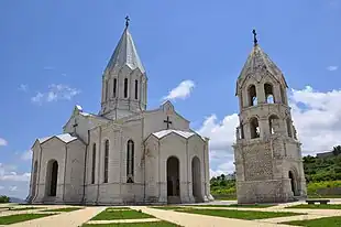 - π Ghazanchetsots Cathedral. Armenian cathedral consisting of a church and a bell tower. It was built in the second half of the 19th century, and used to be the largest Armenian church. It was in use till the Shusha massacre in 1920, and then was used as a barn. It was restored in 1998. Interior decoration is quite modest, which is traditional for Armenian churches.