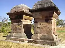 • Double Stupas – Two sandstone stupas, or phra that, cube-shaped with round tops, are west of Mo E-Dang cliff. The stupas house items that indicate the prosperity of the Khmer period.