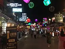 Pub St features two main late night bars, Angkor What? and Temple Club which are directly across from each other. Commonly late night bar-goers will also congregate and drink in the street between the two bars and consume their own alcohol there, which is readily bought at stalls or shops in the immediate area.