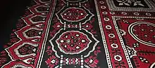 The bazaars of Sindh are known for hand-printed fabrics, glass bangles and Sindhi embroidery work in laid with tinny mirrors, one of the more world known handicrafts of Pakistan. The ralli is a patchwork quilt, is another Sindhi icon and part of the Sindhi heritage and culture. It is made with small pieces of cloth of different geometrical shapes sewn together to create intricate designs. They may be used as a bedspread or a blanket.