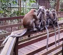 - π MacRitchie Reservoir, Lornie Rd (Bus 162, 166 from Scotts Rd, Bus 74, 132, 165 from Ang Mo Kio MRT Station or Bus 166 from Ang Mo Kio Bus Interchange), β +65 6468 5736. Park open sunrise to sunset, Treetop Walk open 09:00-17:00 Tu-Su. Rather more exciting than it sounds, this serene artificial lake is surrounded by acres of virgin jungle (and not a few golf courses). On the north side, the HSBC Treetop Walk is a 250-m bridge suspended as high as 27 m above the ground. Trails range from 3 to 11 km, and are of different difficulty levels. One can even hike all the way to Bukit Timah. There is a basic food court at the south entrance, and a ranger station with toilets and water at the 4.5 km mark (near Treetop Walk) on the north side. The park is also a popular haunt of canoeing enthusiasts, joggers, and strollers. For history buffs, this was also the site of a Shinto shrine (then called the Syonan Jinja) built by the Japanese during World War II, and the ruins of the shrine, while largely inaccessible without navigational equipment, still survive. For wildlife enthusiasts, the area is also home to two species of monkeys; the crab-eating macaque, which is very numerous and you are almost guaranteed to run into, and the banded surili or banded leaf monkey, which is very shy and critically endangered in Singapore, meaning that you will be very lucky to spot some in the forest canopies. Free.