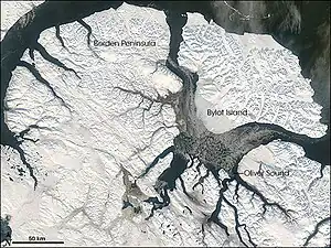 Bylot Island lies off the northern end of Baffin Island and has an area of 11,067 km² (4,273 sq mi). It is also one of the largest uninhabited islands in the world. While there are no permanent settlements, Inuit from Pond Inlet and elsewhere regularly travel to Bylot Island. An Inuit seasonal hunting camp is southwest of Cape Graham Moore.