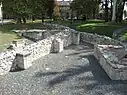 Inside of Fortress - Siscia in Situ, the archeological park Siscia '' in situ '' - the remains of Roman architecture. Southwestern walls with tower from the late 2nd - early 3rd century, within the walls remains horreum - barns, built in the early 4th century.