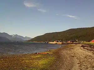Skibotn is on the shore in the innermost part of the fjord Lyngen (which is about 100 km long), surrounded by large mountains including Nallagais, Imagais, Steindalsbreen, Balggesvarr and Storfjellet. The river Skibotnelva empties into the fjord at Skibotn.