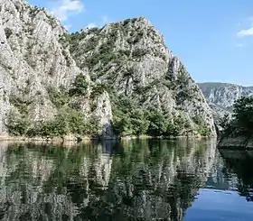 - 🌍 Explore Matka Canyon (50 minutes outside of central Skopje; bus line 60 starting at the central bus station). Features a lake and a hydroelectric dam set in a beautiful gorge. It gets very crowded at the weekends by the locals but otherwise only tourists are there. Kayaking/canoeing on the lake is a popular activity (but expensive), as are fishing, hunting, and swimming. There is also a wild water track under the dam but it's used for just several days per year and no equipment rental is available. Climbers may enjoy a variety of tours of varying difficulty there. There is a trail running along one bank of the lake as far as another dam; it offers very nice views but leads to 'nowhere' and no caves can be accessed from it (in contrary what the map at the entrance suggests). There are several expensive restaurants at the entry (e.g. "Bear's Cave" (in Macedonian: Mechkina dupka), built into a cave) and no free water source.