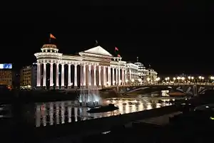 - 🌍 Government of the Republic of North Macedonia (Влада на Република Македонија), Boulevard Ilinden 2. Built in a modern style, it received a complete makeover in the early 2010s transforming the complex into a white neoclassical style.