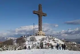 - 🌍 Millennium Cross (Милениумски крст), ☏ +389 70 806 626. The massive cross, erected in 2002, stands on Vodno's highest peak. It was built to commemorate 2,000 years of Christianity in the world. It is 66 m (217 ft) tall and has an elevator within it. It also now has a restaurant and souvenir shop next to it. As it sits on the most prominent peak in the area, it provides expansive views of the city.