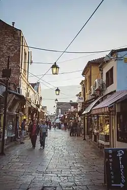 The Stara Čaršija (Macedonian: Стара Чаршија; meaning Old Bazaar or Old Town) of Skopje, North Macedonia, is the city's historic centre. First inhabited thousands of years ago, it was an important centre of commerce during Ottoman times when it enjoyed its peak importance. The Ottoman heritage is predominant in Stara Čaršija: there are roughly 30 mosques, three caravansaries, and a few hamams (Turkish baths) still standing, in addition to a clock tower and other Ottoman structures. Despite the earthquakes and various other disasters Skopje has seen, the neighbourhood is in very good shape. Many of its buildings were restored in the 2010s, largely funded by the Turkish government. It is an authentic Macedonian contrast to the controversial "faux historic" buildings being constructed around the city. A must-see when visiting Skopje, the Stara Čaršija is one of the largest and best collections of Ottoman architecture and history.