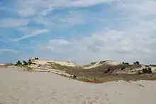 Słowiński National Park (pronounced 'swo-vinski'; in Polish: Słowiński Park Narodowy) is a national park in Poland in Pomorskie next to the Baltic Sea. The park features unique shifting sand dunes, woods, lakes and a long coastline with a beach, and is designated in the UNESCO list of World Biosphere Reserves.