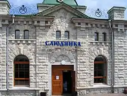 - 🌍 Slyudyanka-1 (Слюдянка I), ул. Тонконога, 18. The main station, doubling as one of the town's landmarks. It's more "touristy" than average Russian railway stations as it has a small museum but not a proper waiting room. It's also on the Baikal side of the railway; to reach the commercial side of the city you need to cross the long pedestrian bridge across the tracks. There are several kiosks on the platform.