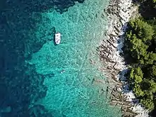The water off the coast is very clear and of bright blue color during sunshine hours.