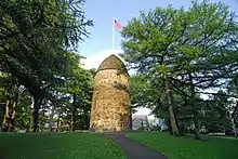During wartime, the geography of Somerville's Prospect Hill made it a fitting place to command an army. Thanks mainly to its height and views of the area, it was fortified with Continental Army troops late in 1775 and became known as "The Citadel". To celebrate the new year, the Grand Union flag (a pre-cursor to the modern American flag) flew here for the first time January 1st, 1776. Many consider this to be the first official raising of any American flag.