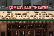 - 🌍 The Somerville Theatre, 55 Davis Sq (T: Davis), ☏ +1 617-625-5700. This movie theater shows fairly cheap 2nd-run movies as well as live musical acts. It was built as a vaudeville theater and had several smaller theaters added over time. When it's time to relieve yourself after the film, don't miss the Museum of Bad Art. It's advertised as the world's only museum dedicated to the collection, preservation, exhibition and celebration of bad art in all its forms. Admission to the MOBA gallery is free with your ticket. Oh, and in addition to the usual movie theatre concessions, they also serve beer.