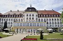 - 🌍 Sofitel Grand Sopot, ul. Powstańców Warszawy 12/14, ☏ +48 58 5206000. Sopot's own grand old hotel, built in 1927, with beautiful gardens, indoor and outdoor swimming pools, fitness center, and views of the sea. It is near the pedestrian boulevard and molo, but the crowds thin out around the hotel.
