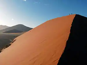 - Watch the sunrise. This sounds like a see activity, but is actually very much a do thing. Climb dune 45 (or any other) in the dark and then watch the sunrise in the world's oldest desert. Note that this is only possible if you stay in accommodation run by Namibia Wildlife Resorts. For all other visitors the gate only opens at sunrise. Dune 45 takes another 45 km to drive, that's where the name comes from, and about an hour to climb.