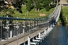 - 🌍 Souris Swinging Bridge. Canada's longest historic cable-stayed footbridge at 177 m (581 ft). It was built in 1904, and was reinforced in 1907, 1961 and again in 1974. The bridge was completely rebuilt after the floods of 1976 and 2011.