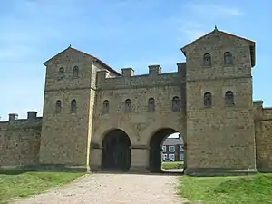 - 🌍 Arbeia Roman Fort, Baring Street, South Shields NE33 2BB, ☏ +44 191 277 1409. April-Sept M-F 10:00-17:00, Sa 11:00-16:00, Su 14:00-17:00. Site of a large Roman fort: the west gatehouse, barracks and commander's quarters have been reconstructed. This was the supply base for Hadrian's Wall, which began at Wallsend on the north riverbank and marched westward up hill down dale to the Solway beyond Carlisle. It was also the depot for expeditions further north against the Picts or Scots. "Arbeia" means "of the Arabs" - in the 2nd / 3rd century it was garrisoned by recruits from Singara, now Sinjar in Iraq. One grave monument mourns the British wife of Barates, a merchant from Palmyra in Syria. Another commemorates Victor, a young Moorish freed slave. Castra canis amica est - the fort is dog-friendly. Free.