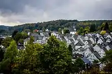 South Westphalia (German: Südwestfalen) is a region in North Rhine-Westphalia, Germany. It consists of Sauerland, Siegerland and some smaller sub-regions and is the most sparsely populated region of the state. The landscape is characterised by rolling hills and (low) mountain ranges, making Sauerland and the Rothaar Mountains one of Germany's northernmost skiing areas. Beyond winter sports, the region is popular for hiking, camping and its small and romantic historical towns.