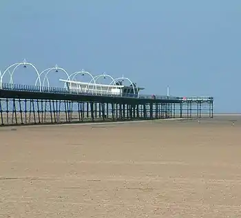Southport is a large tourist town of 91,703 (2011) on the coast, just north of Liverpool. It is in the borough of Sefton in Merseyside. It is in the historic county of Lancashire.