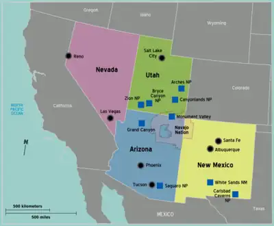 The Navajo Nation is a reservation that overlaps areas of three of these states.