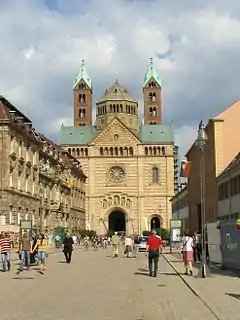 The foundation stone of the imperial cathedral was laid in 1030 by Conrad II, Holy Roman Emperor and first of the Salian dynasty. The cathedral is the resting place of the Salian dynasty. It was widely destroyed in the War of the Grand Alliance in 1689.