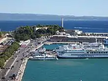 - 🌍 Split city beach (continue south past the bus station, follow the road which goes by the tracks, and from the bridge over the tracks you can take a stairs down to the beach). If you have a longer stop-over in Split, 5 min south of the passenger terminal and the train and bus stations lies Split's city beach where you can take a plunge in the Adriatic. free.