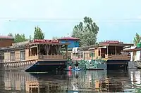 Srinagar is popular for its houseboats, which do not float free around the lake, but are anchored off-shore. It is a great and unique way to enjoy your stay in the city. Houseboats are accessible either by road, or by a short "Shikara" boat ride. Each houseboat usually has 2-5 bedrooms plus bath, dining room, living room, upper deck (good for sunbathing). Land access have the advantage of allowing you to leave if you feel uncomfortable, or just like going for a walk, although they tend to be noisier.