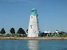 - π Rear Range Lighthouse, 57-61 Lighthouse Rd (across the harbour from Lakeside Park). The lighthouse is a wooden, octagonal tower with a 12-sided lantern at the top. It was built in 1898 to serve the now-defunct third Welland Canal which passed through Port Dalhousie. Today, the lantern is not used.