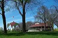 - π Montebello Park, 64 Ontario St (bordered by Ontario, Lake, Queen & Midland streets). This heritage park was started in 1887. It has a rose garden with over 1,300 bushes in 25 varieties. The park also has an ornamental fountain, a band shell and pavillion.